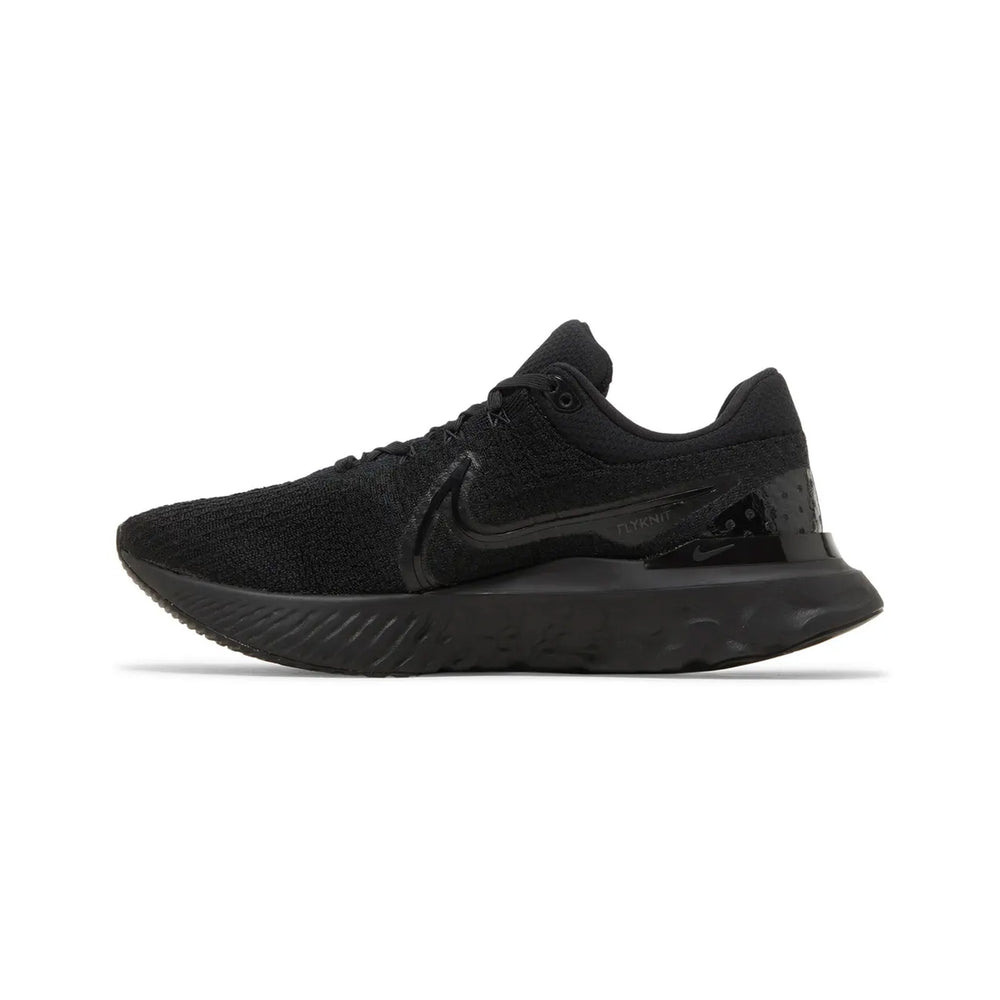 The Nike React Infinity Run Flyknit 3 'Triple Black' (2022) delivers an elevated running experience, combining innovative technology with a sleek, all-black aesthetic. Designed for runners seeking a blend of performance, comfort, and style, the React Infinity Run Flyknit 3 features a seamless Flyknit upper, a responsive React foam midsole, and a durable rubber outsole for optimal grip. This iteration embraces the monochromatic 'Triple Black' colorway, ensuring that the shoe not only performs but looks sharp on the streets or the track.