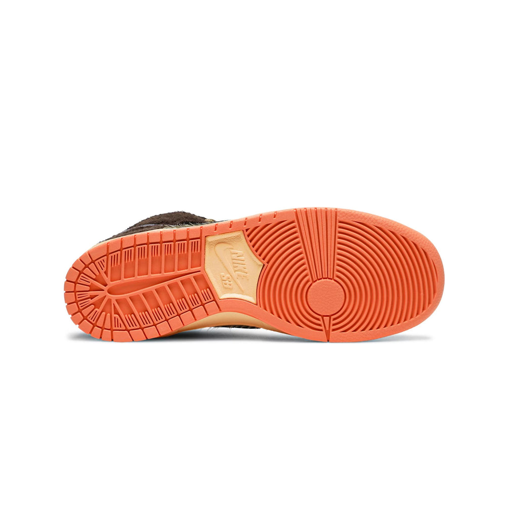 Crafted with a premium leather upper in rich hues of brown, green, and orange, the sneaker mirrors the layers of a Turducken, with each panel representing a different aspect of the dish. The quarter panels feature a feather-like pattern, reminiscent of the poultry within the culinary marvel. A plaid inner lining adds a touch of rustic charm, while a gum rubber outsole provides durability and traction. This Dunk High is not just a shoe; it's a culinary journey translated into footwear.