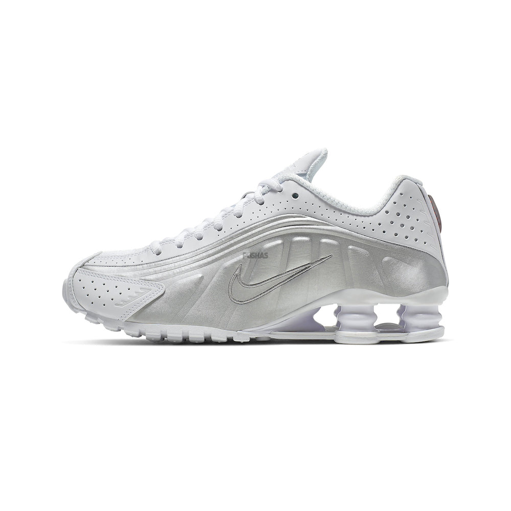 Fact-checked to feature a pristine 'White Metallic' colorway, this Nike Shox R4 W is a testament to the brand's commitment to delivering both style and performance. The premium materials used in its construction, fact-checked for quality, not only contribute to the sneaker's sleek aesthetic but also guarantee durability for long-lasting wear.