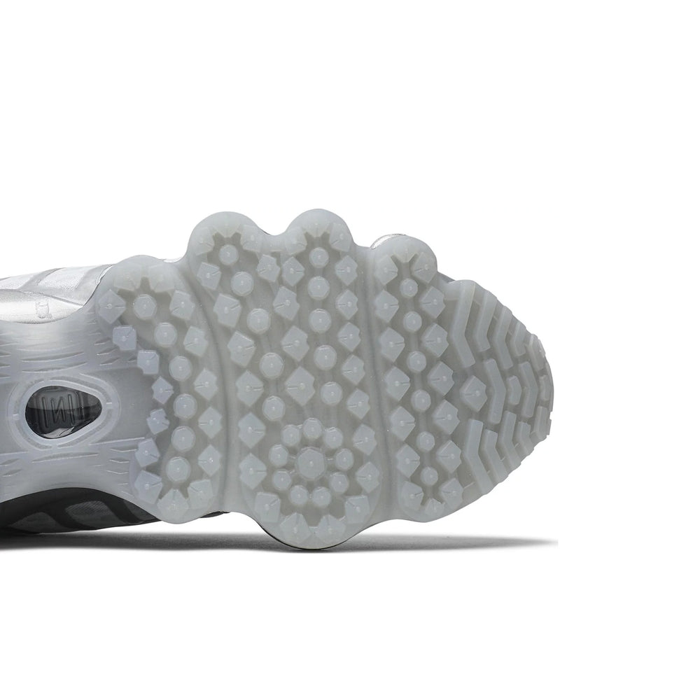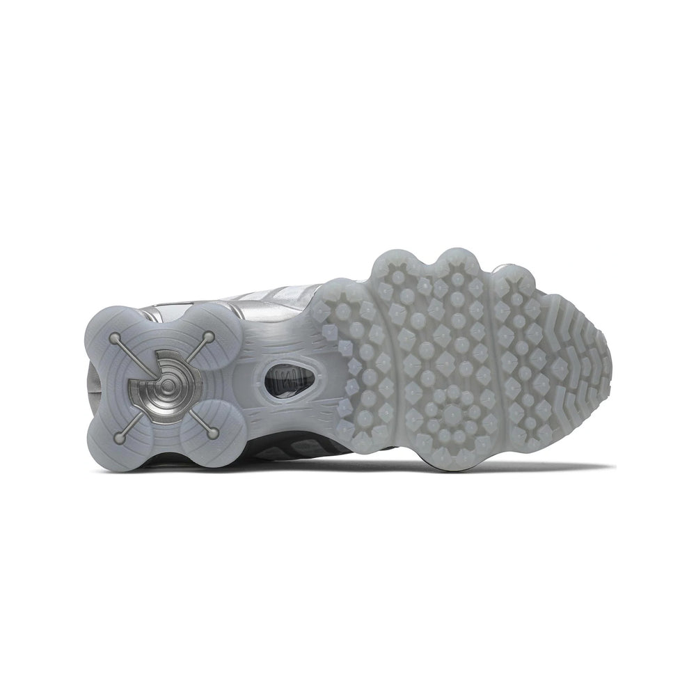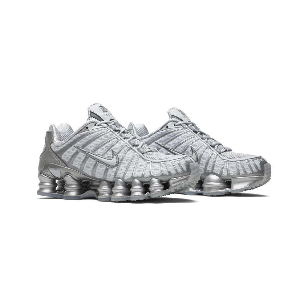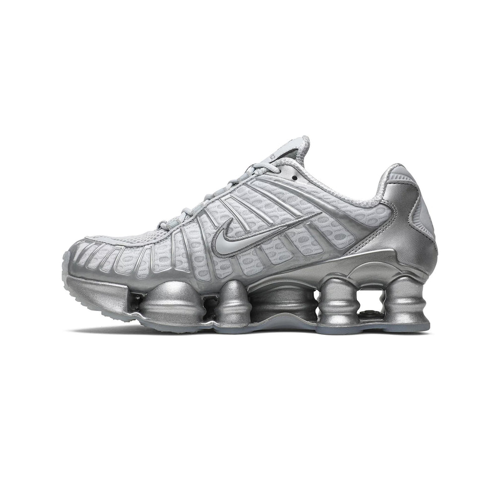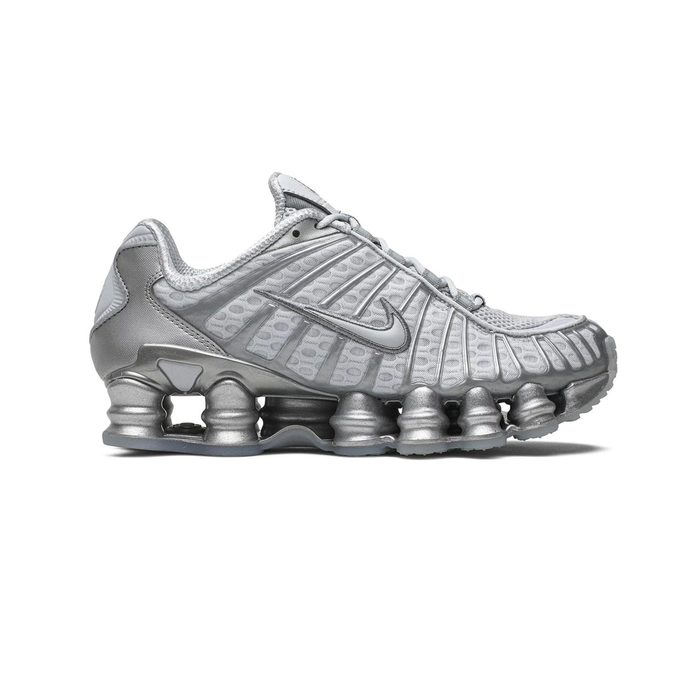 The Nike Shox TL 'Chrome' Women's shoe features a striking chrome upper that commands attention, reflecting light and creating a bold, futuristic look. The sneaker's design is enhanced by a mesh base, providing breathability and comfort for all-day wear. The iconic Shox columns in the midsole deliver responsive cushioning, ensuring a smooth and supportive stride. The chrome detailing extends to the heel and midsole, adding a layer of sophistication and modernity. The rubber outsole offers excellent traction, making these sneakers suitable for various surfaces. This release stands out not only for its visual appeal but also for its innovative functionality, seamlessly blending style with performance.