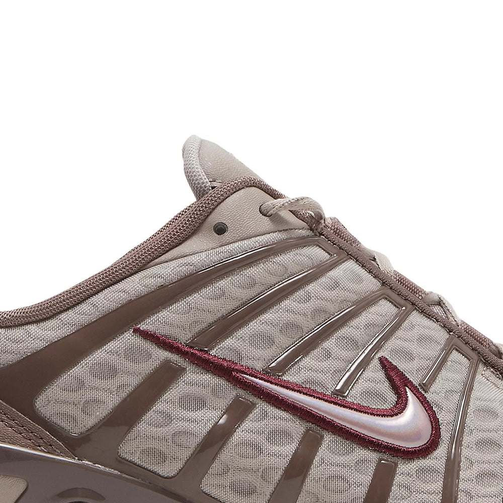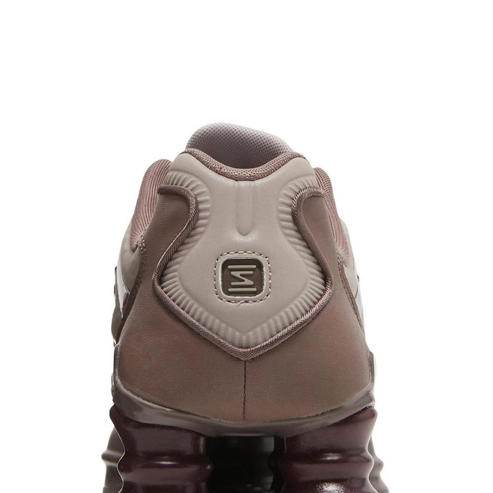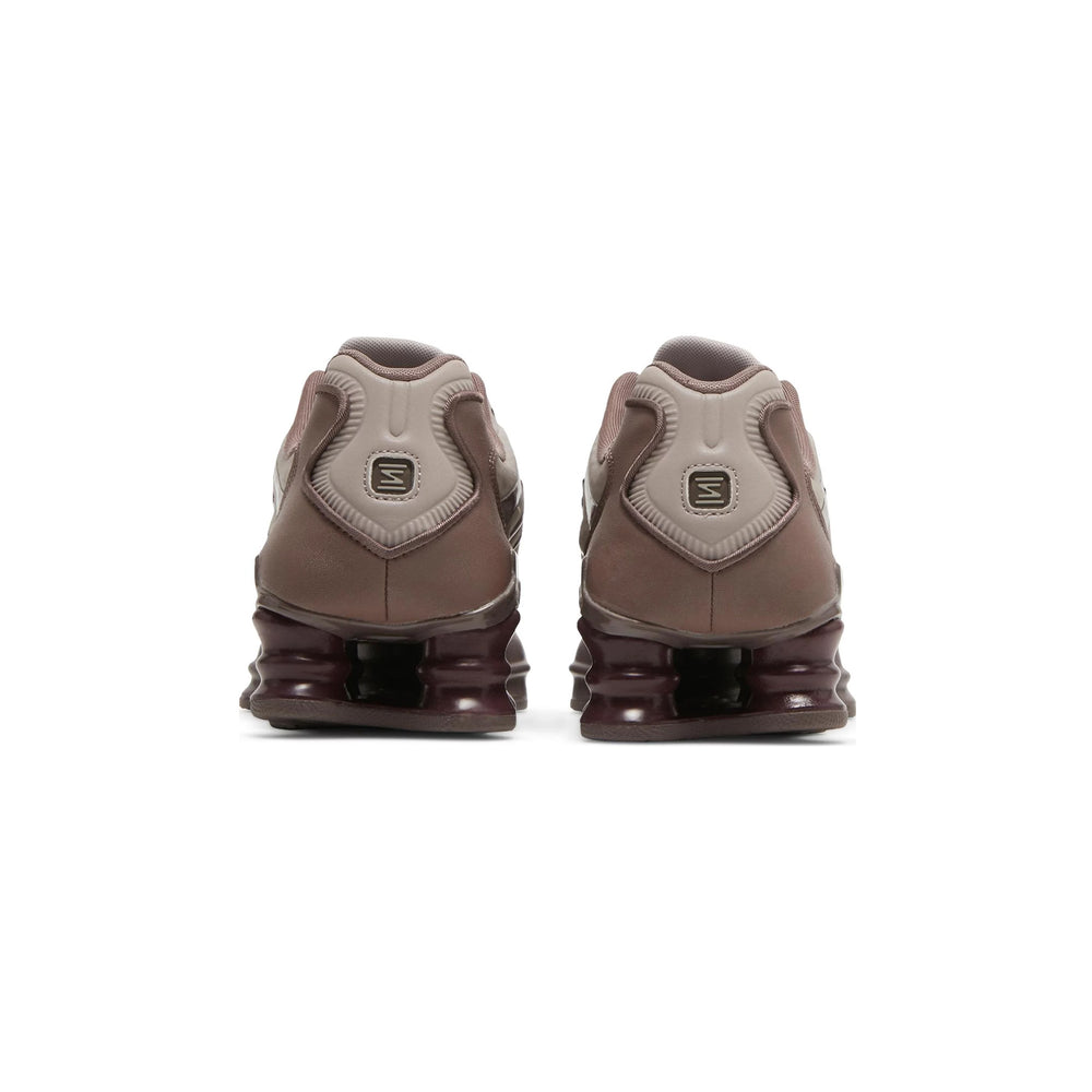 The Nike Shox TL 'Pumice Night Maroon' Women's edition showcases a captivating combination of hues and textures. The upper is constructed from breathable mesh and synthetic overlays, ensuring optimal support and ventilation. The color palette of 'Pumice' and 'Night Maroon' creates a striking visual contrast, complemented by subtle metallic accents that add a touch of sophistication. The signature Shox columns, extending from heel to midfoot, are engineered to provide exceptional impact protection and energy return, making this sneaker ideal for high-performance activities and everyday wear.