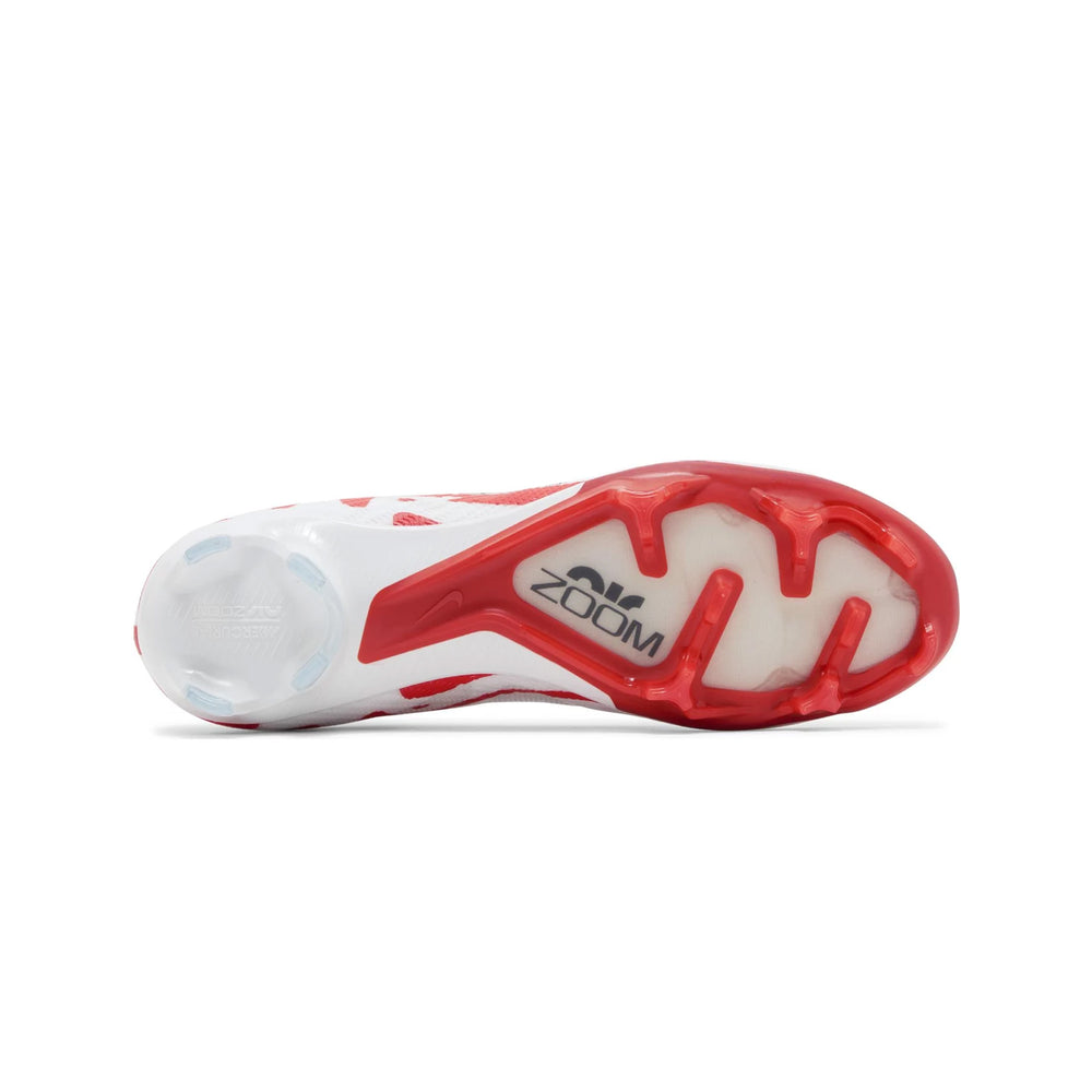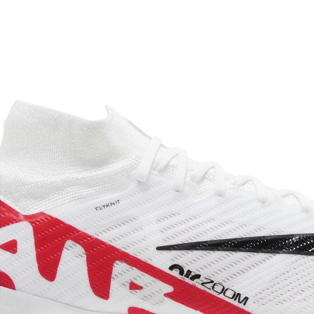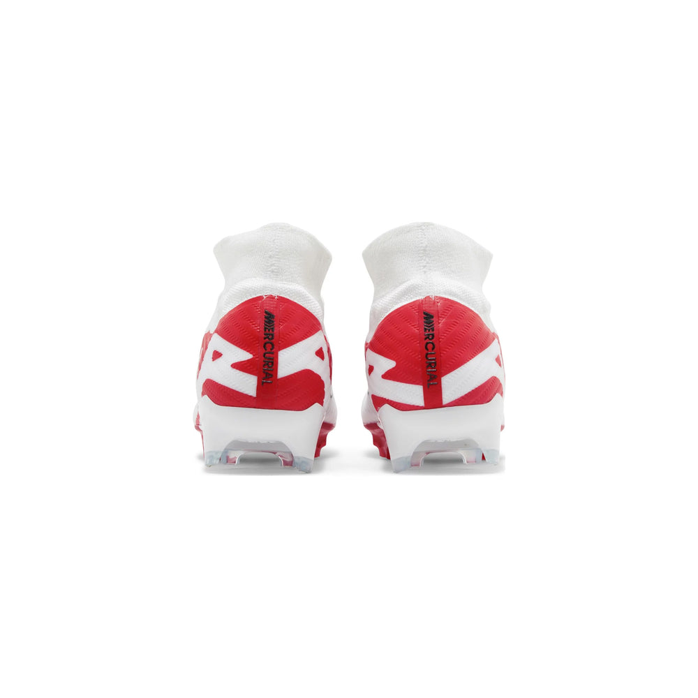 The Mercurial Superfly 9 Elite FG ‘Ready Pack’ features a dynamic, streamlined silhouette built for speed. The upper is crafted from Vaporposite+, a blend of grippy mesh and durable fibers that deliver optimal ball control even at high speeds. The iconic Flyknit collar offers a snug, sock-like fit that stabilizes the ankle, while the lightweight, responsive Zoom Air unit in the forefoot gives players an added spring in their step. A multi-directional stud pattern ensures exceptional traction on firm-ground surfaces, making it a go-to option for forwards and midfielders alike. The boot's bold colorway, combining vibrant orange with black and white accents, exudes confidence and energy, ensuring that players not only perform their best but also stand out on the field.
