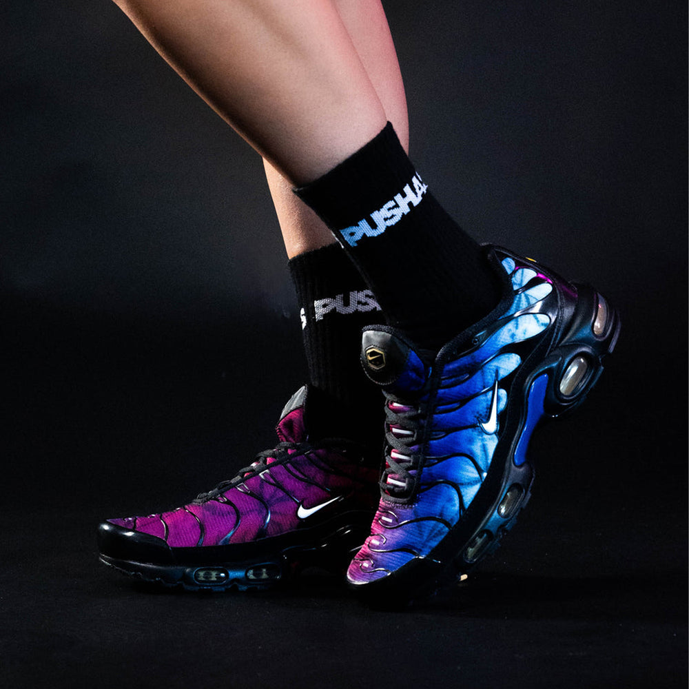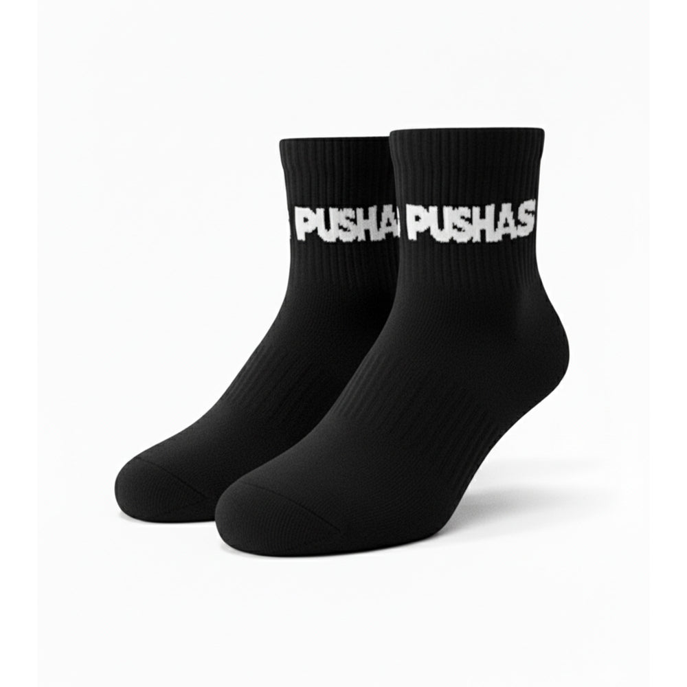 Elevate your sneaker game with PUSHAS 'Premium Logo' Socks, designed to be the perfect match for your fresh kicks. Available in both high cut and medium unisex cut, these socks are crafted to suit every style and sneaker occasion, blending seamlessly with your favorite pairs for that flawless look.