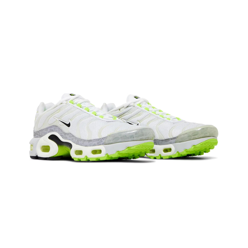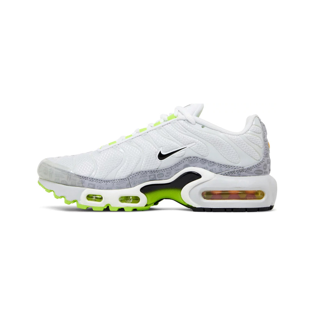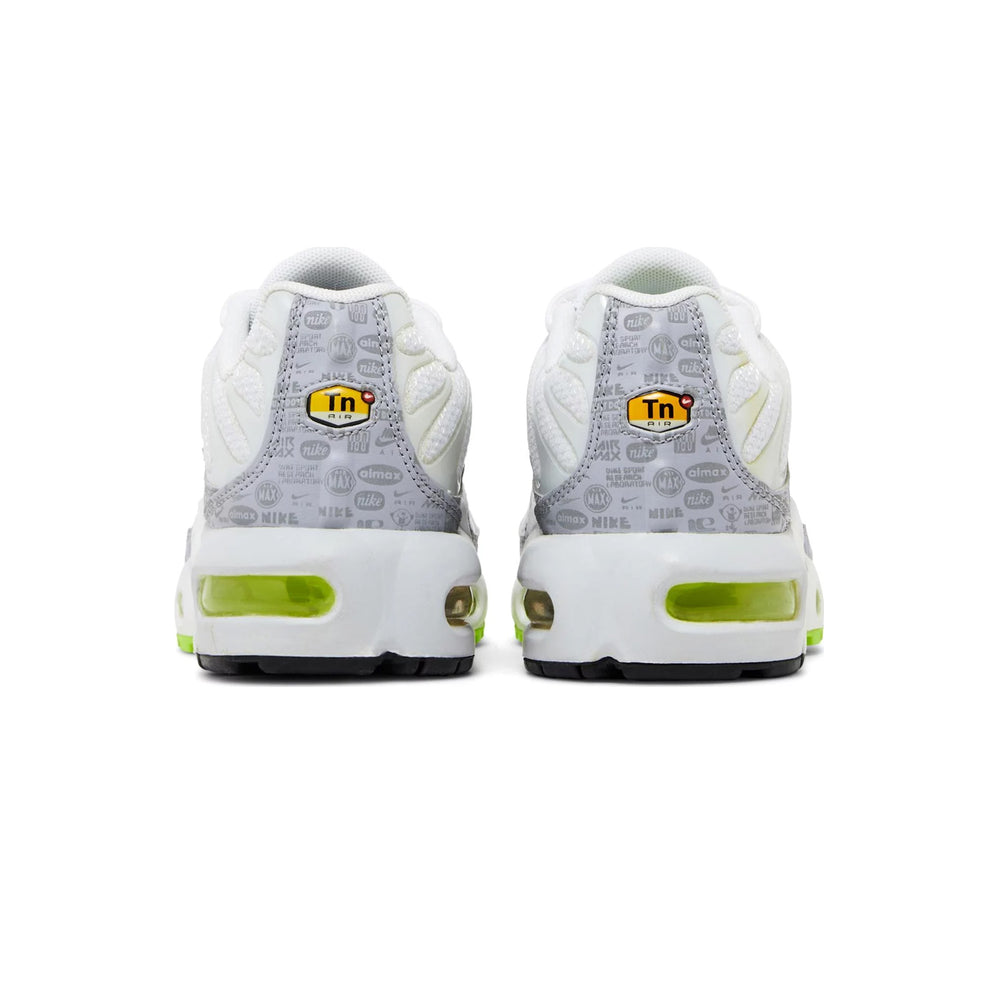 Shop the Refurbished Air Max Plus TN 'Retro Air Max Logos / Reflective White Volt' GS (2021).