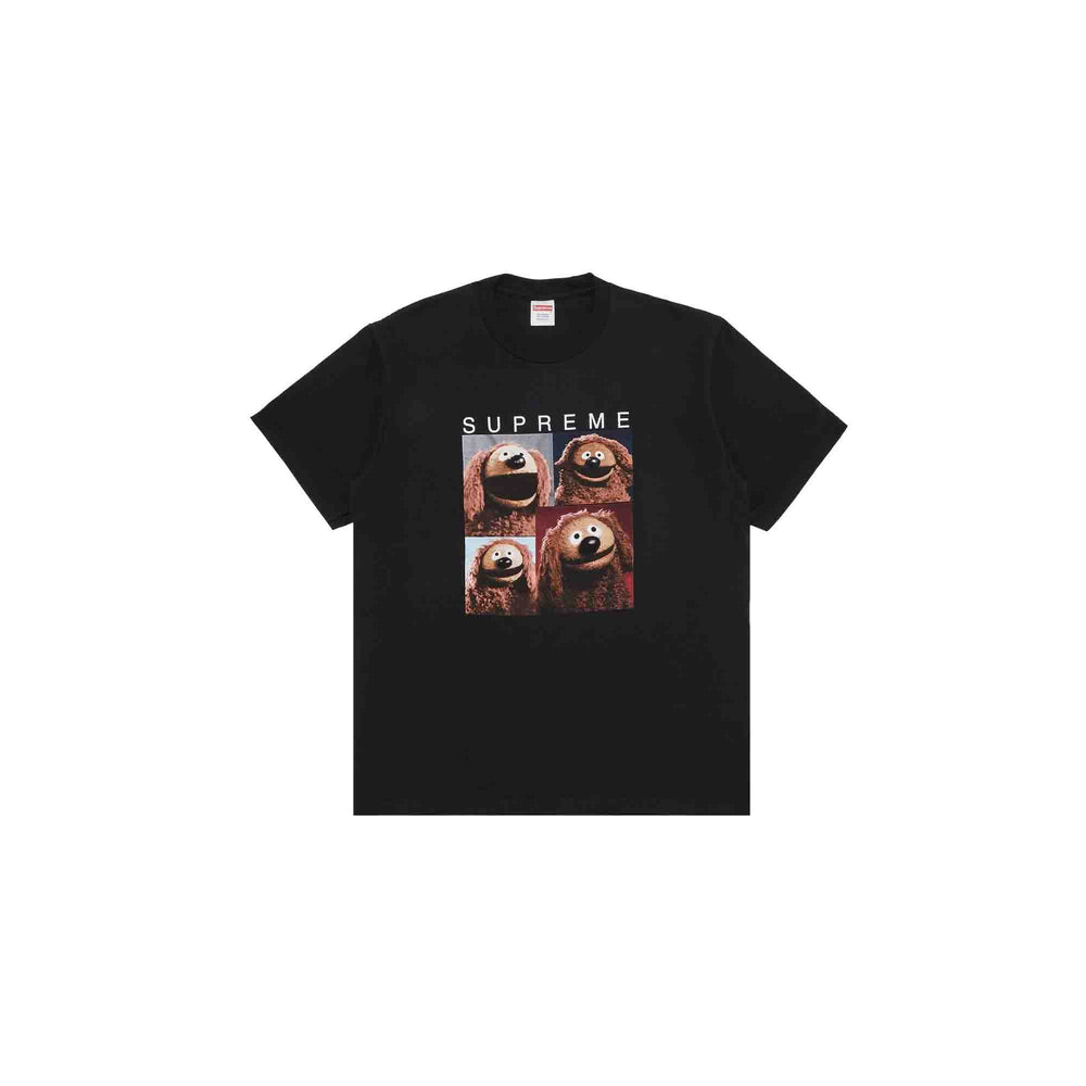 The tee is crafted from high-quality, 100% cotton, ensuring a soft, comfortable fit that withstands the rigors of daily wear. The classic black colorway serves as a versatile canvas, effortlessly integrating into any wardrobe. Central to the design is a vibrant graphic of Rowlf, depicted in his characteristic playful demeanor. This image is meticulously printed using advanced techniques to maintain its vibrancy and detail wash after wash. The Supreme logo, subtly incorporated into the graphic, affirms the piece's authenticity and exclusivity.