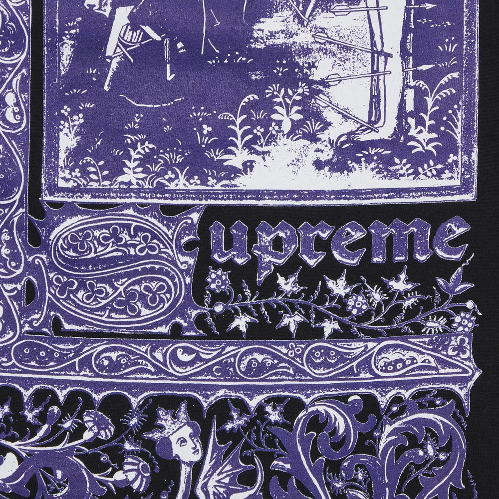 Crafted from high-quality cotton, the 'Black' long-sleeve tee showcases a striking graphic of Saint Sebastian, rendered in meticulous detail. The bold design contrasts sharply against the black fabric, emphasizing the artwork's intricate lines and the saint's serene expression despite his trials. The tee features ribbed cuffs and a ribbed crewneck, ensuring a comfortable and secure fit. Supreme's signature logo is subtly incorporated into the design, adding a layer of authenticity and brand recognition without overshadowing the central artwork. This tee is a testament to Supreme's ability to merge cultural and historical motifs with modern streetwear sensibilities.